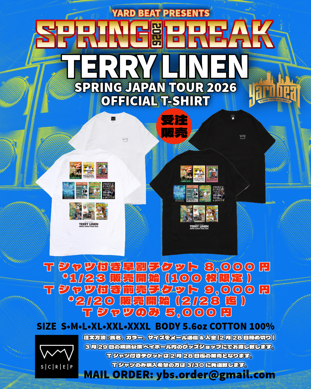 ご希望の方は特典付きチケットを購入後、お名前・色・サイズを下記メールアドレスまで送信ください。